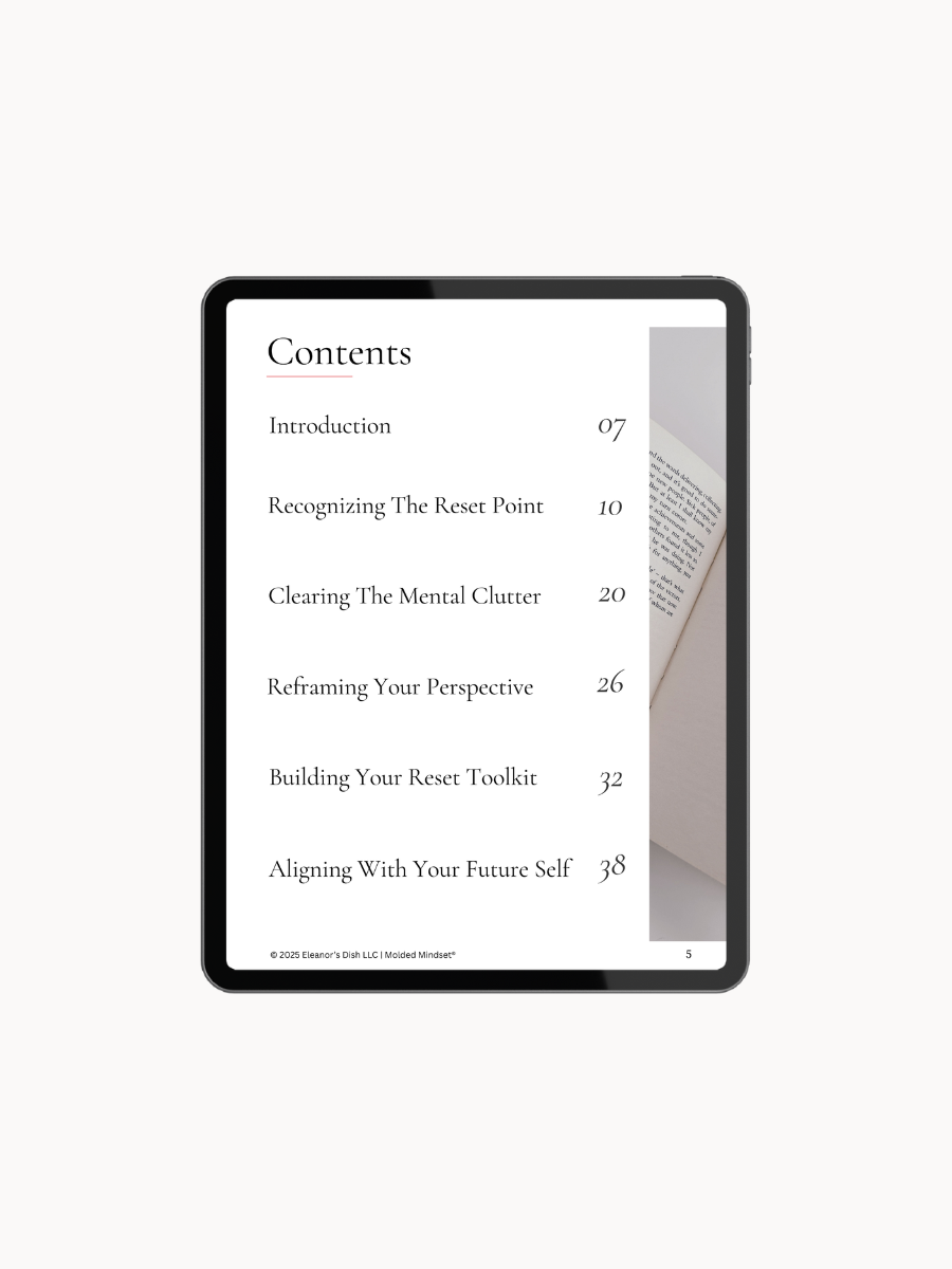 The Mindset Reset Guide is a practical and soulful guide designed to help you release what no longer serves you, reframe how you think, and rebuild your mindset with intention. It’s more than a self-help book. It’s a guided reset for your inner world.
